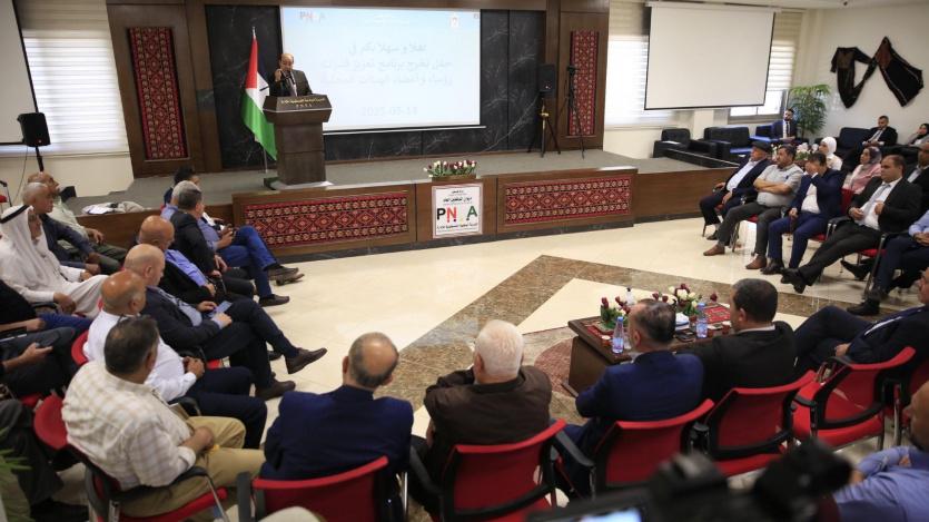 جاء ذلك بحضور وزير الحكم المحلي د. م. سامي حجاوي، ورئيس ديوان الموظفين العام، ورئيس مجلس إدارة المدرسة الوطنية للإدارة أ. موسى أبو زيد، والمدير التنفيذي للمدرسة، الوكيل وجدي زياد.