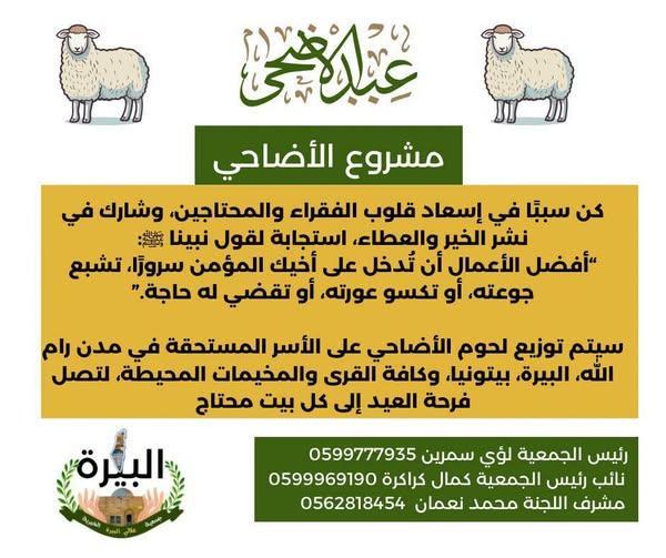 "في كثير من الحالات، باتت الأضحية حلمًا بعيد المنال. ومع غياب الدعم الرسمي، نوجّه نداءنا إلى أصحاب القلوب الرحيمة، خصوصًا من أبناء فلسطين في الشتات، وفلسطينيي الداخل، والجاليات الإسلامية حول العالم، ليجعلوا من عيد الأضحى فرصة لإدخال السرور على من لا يملكون شيئًا."