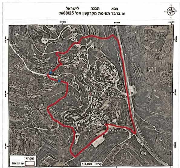 واستهدف الأمر الثاني الذي حمل الرقم ت/38/25 ما مجموعه 4.821 دونماً من أراضي حوارة في محافظة نابلس، وتحديداً منطقتي النجمة القبلية والطول، وذلك بهدف إقامة سياج أمني محاذٍ للشارع، وتترتب على فرض الأمر العسكري محاصرة منزل فلسطيني بالسياج العازل، ووضع بوابة عند مدخل المنزل، ما يُعرّض العائلة لخطر الحصار.