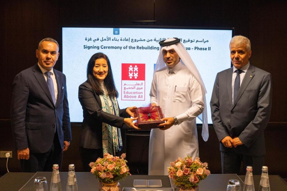بدورها، شددت الممثل الخاص للمدير العام لبرنامج الأمم المتحدة الإنمائي/برنامج مساعدة الشعب الفلسطيني بالإنابة شيتوسي نوغوتشي، على أهمية هذه الشراكة الثلاثية التي تضم وزارة التربية والتعليم العالي الفلسطينية، ووزارة التربية والتعليم القطرية، ومؤسسة "التعليم فوق الجميع".
