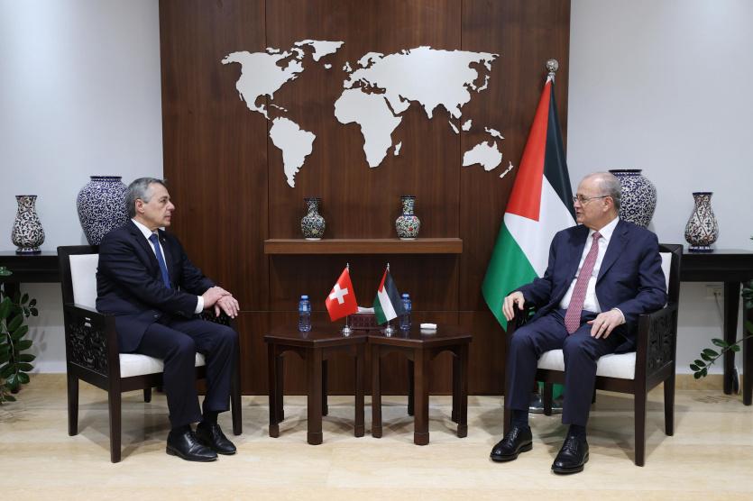 جاء ذلك خلال لقائه وزير خارجية سويسرا إجنازيو كاسيس، اليوم الأربعاء، في مكتبه برام الله، بحضور وزيرة التنمية الاجتماعية سماح حمد، وممثلة سويسرا لدى فلسطين آن- ليز هينين، لبحث جهود وقف الحرب على غزة وتنسيق المواقف لإنجاح مؤتمر نيويورك.