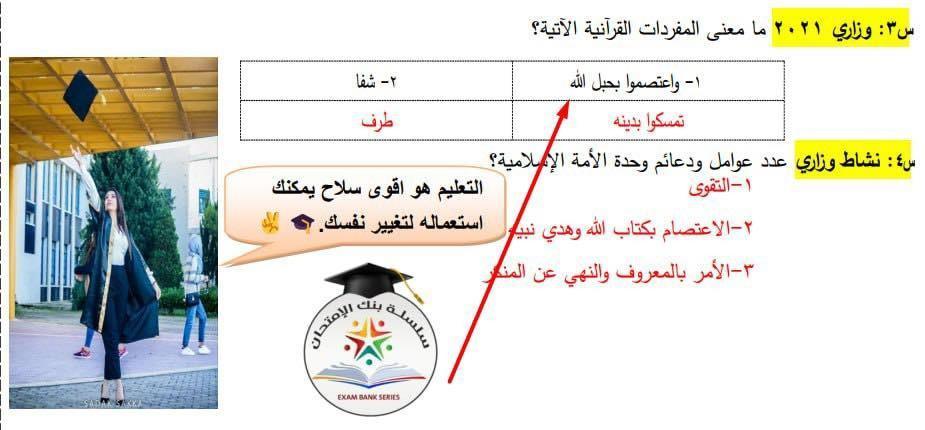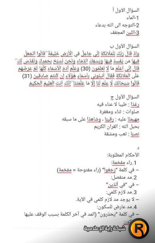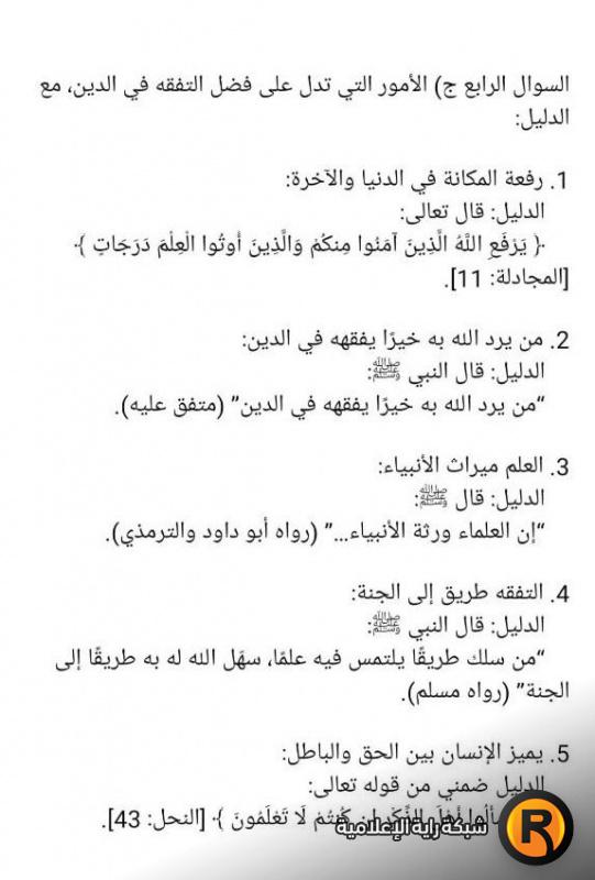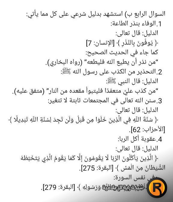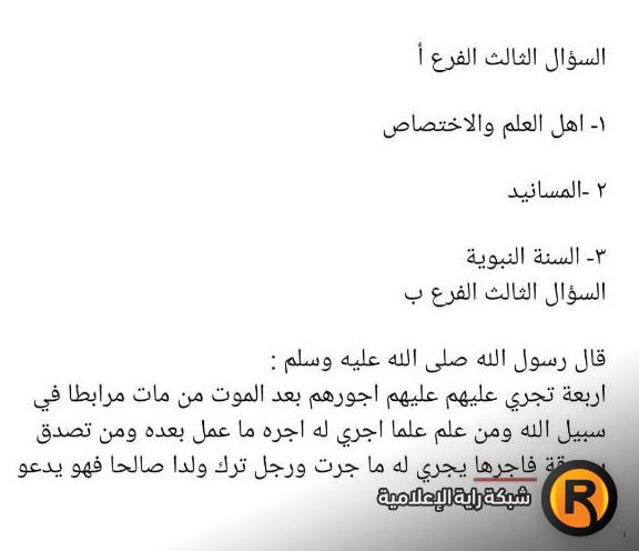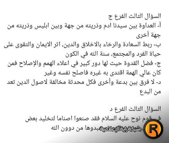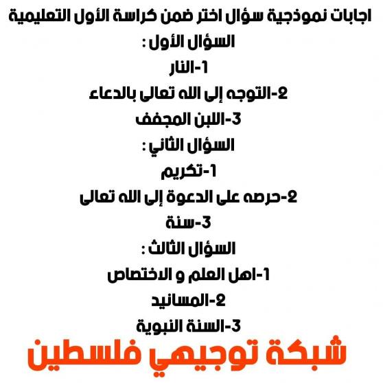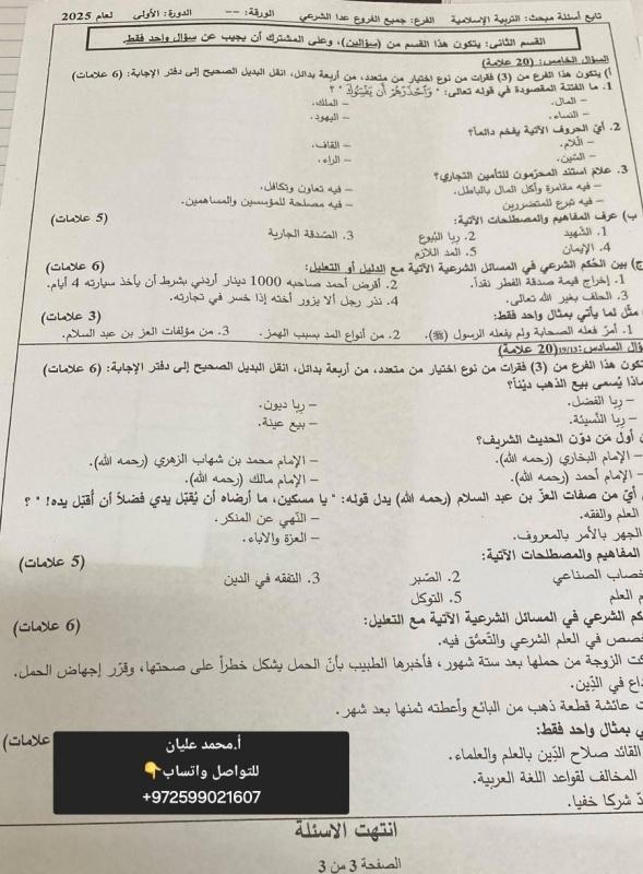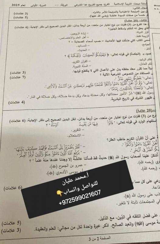 إجابة حل امتحان التربية الإسلامية للثانوية العامة توجيهي فلسطين 2025