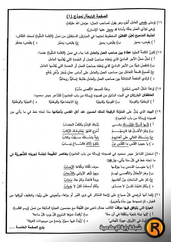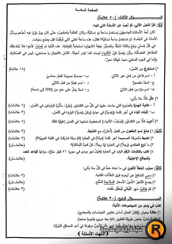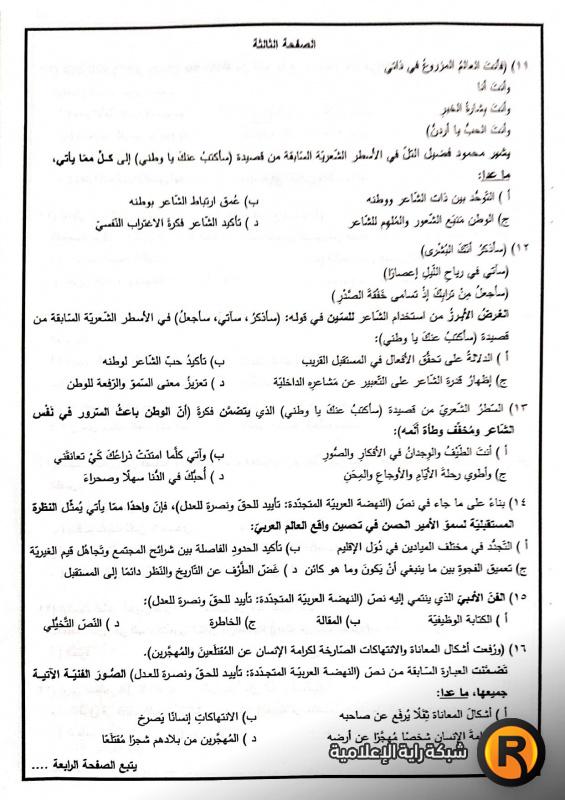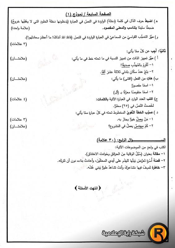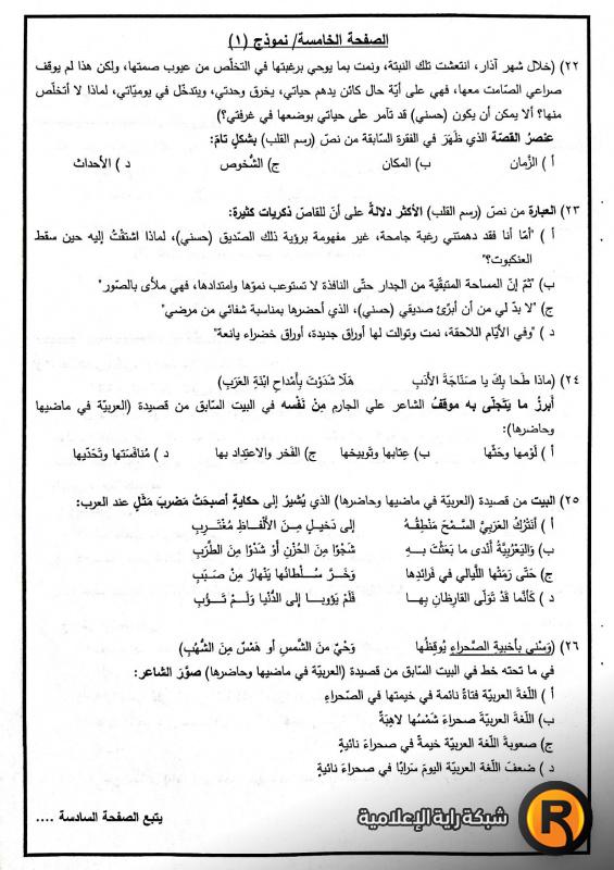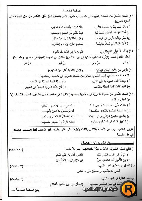 رابط تحميل أسئلة امتحان اللغة العربية: