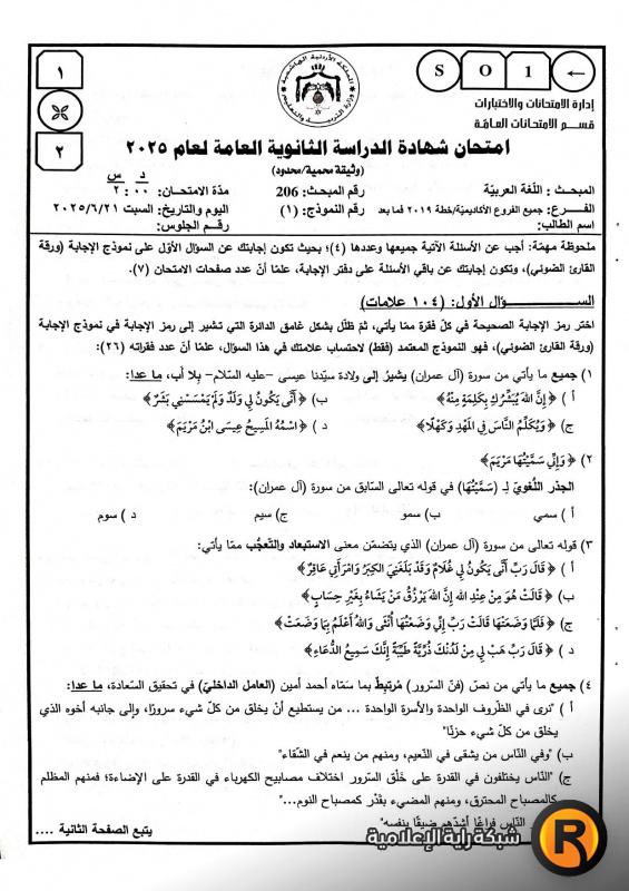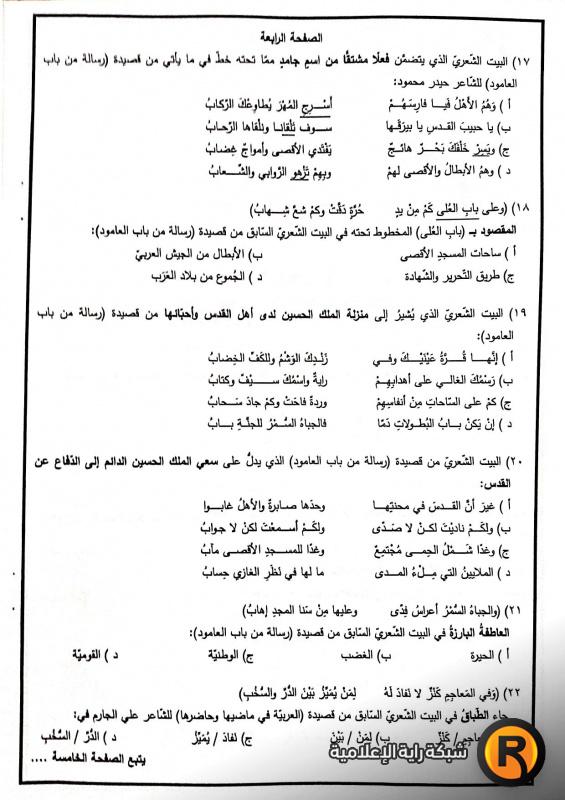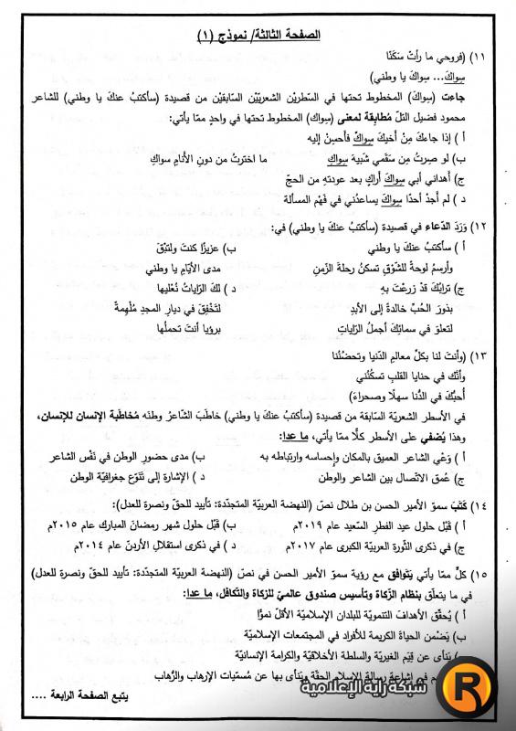 إجابات حل أسئلة امتحان اللغة العربية للثانوية العامة توجيهي الأردن 2025