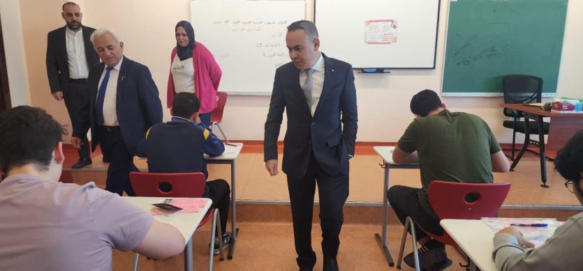 وكان في استقباله مدير عام مجمع المدارس الفلسطينية سعادة اشتية، وممثلة وزارة التربية والتعليم خلود ارشيد، إلى جانب الكادر التعليمي والإداري، إذ قدموا له شرحًا مفصلًا عن الإجراءات التي تم اتخاذها لضمان تنفيذ الامتحانات بنجاح ووفق أعلى المعايير.