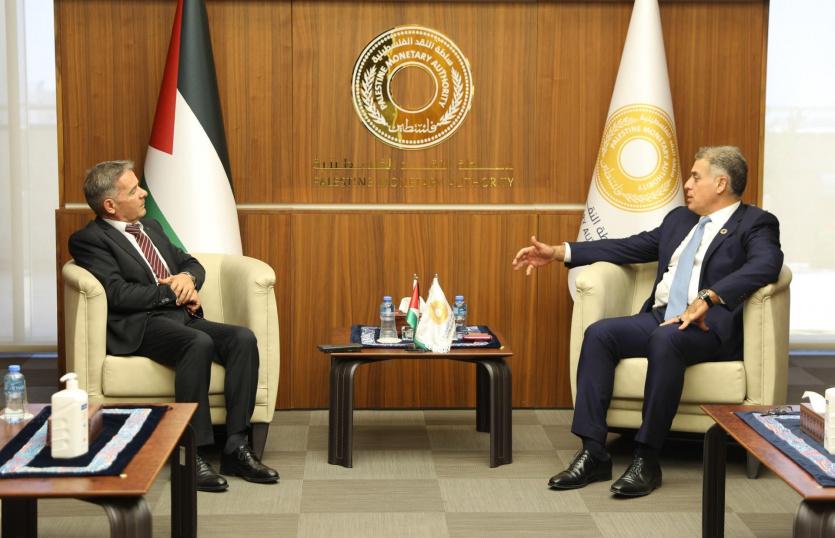 وخلال اللقاء، استعرض المحافظ أبرز الجهود التي تبذلها سلطة النقد لتجاوز الأزمات الحالية، والتحديات التي تواجه الجهاز المصرفي في ظل التطورات الاقتصادية والمالية الحالية، مؤكدًا على أهمية التعاون مع هيئة مكافحة الفساد في مجالات الحوكمة، والشفافية، والنزاهة المالية. كما أطلعه على التعليمات الأخيرة التي أصدرتها سلطة النقد للمصارف، والتي تهدف إلى تمكين المواطنين من الوصول إلى خدماتهم المصرفية بسهولة، وشملت تسهيل قبول الإيداعات النقدية من العملاء الأفراد، بما يتيح لهم تغذية حساباتهم المصرفية، وشحن بطاقاتهم البنكية، وتوفير أرصدة مقابل الشيكات المسحوبة على حساباتهم، وبالتالي تعزيز استخدام وسائل الدفع الإلكتروني في السوق المحلي.