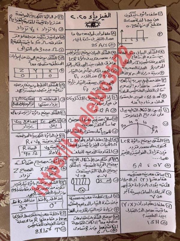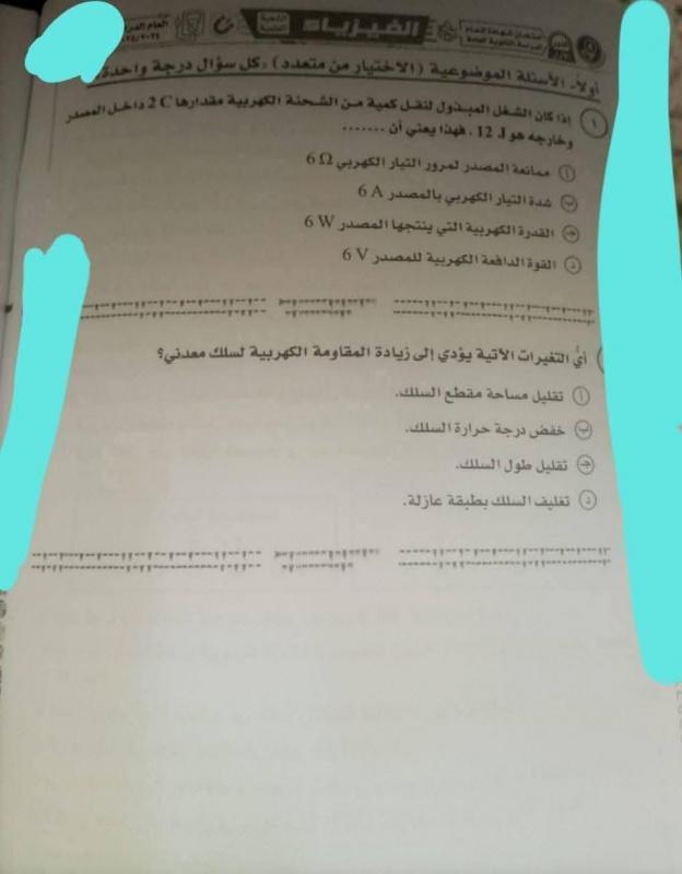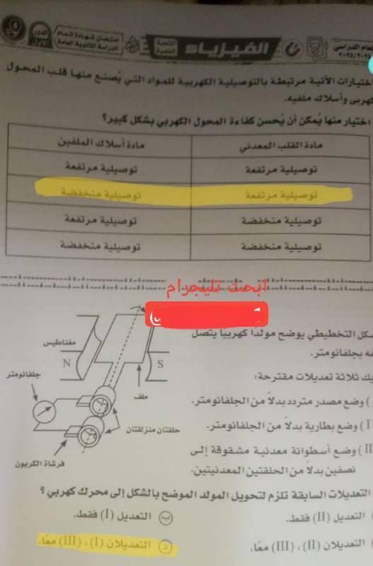 إجابة امتحان الفيزياء ثانوية عامة مصر 2025 حلول وإجابات نموذجية