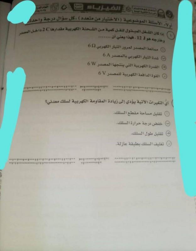تضمن هذا القسم أسئلة اختيارية متعددة الخيارات، حيث كان التركيز على مفاهيم أساسية مثل الطيف الضوئي، الطيف المتصاعد، والطيف الممتص. كما تناولت الأسئلة كيفية تفسير نتائج التجارب المتعلقة بالطاقة الكهربائية والطاقة الحرارية.
