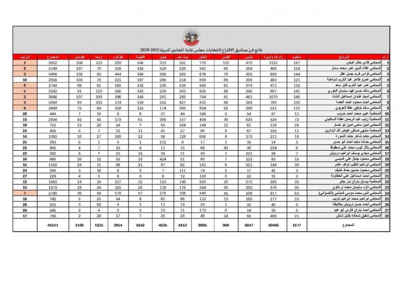النتائج النهائية لانتخابات نقابة المحامين الفلسطينيين