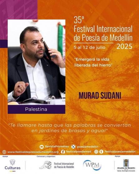 افتتح الشاعر مراد السوداني ، الأمين العام للاتحاد العام للكتاب والأدباء الفلسطينيين إلى جانب الشاعر الكولومبي فيرناندو ريندون ، رئيس حركة الشعر العالمية ، ومدير مهرجان ميديين الدولي للشعر ، والذي يقام سنوياً في مدينة ميديين بكولومبيا .المهرجان بطبعته ال35.