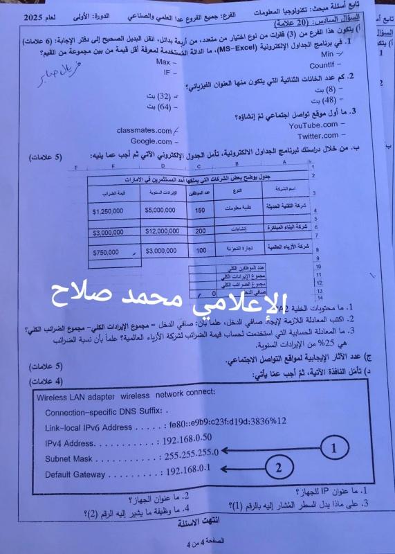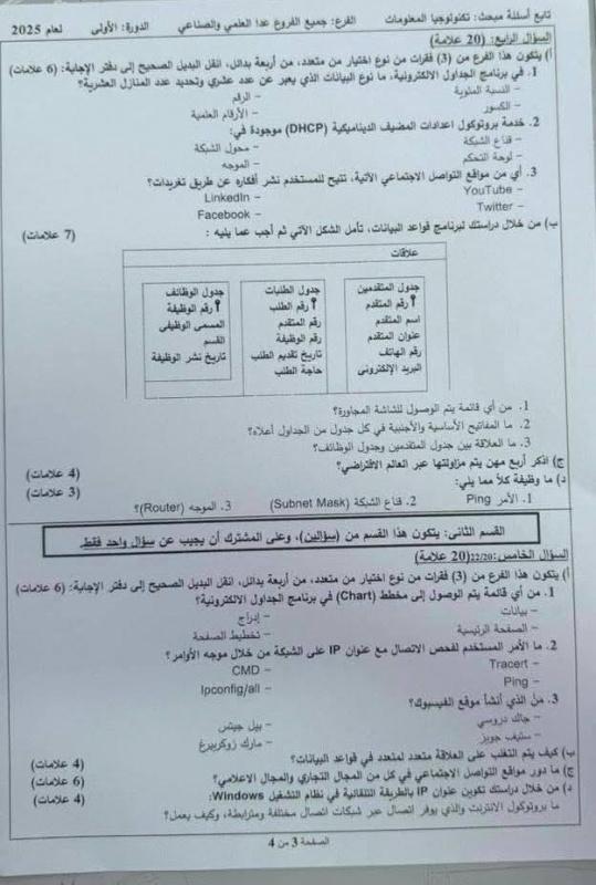 يتكون من أسئلة تطبيقية حول الشبكات، عناوين IP، برامج إدارة المواقع، قواعد البيانات، إلخ.