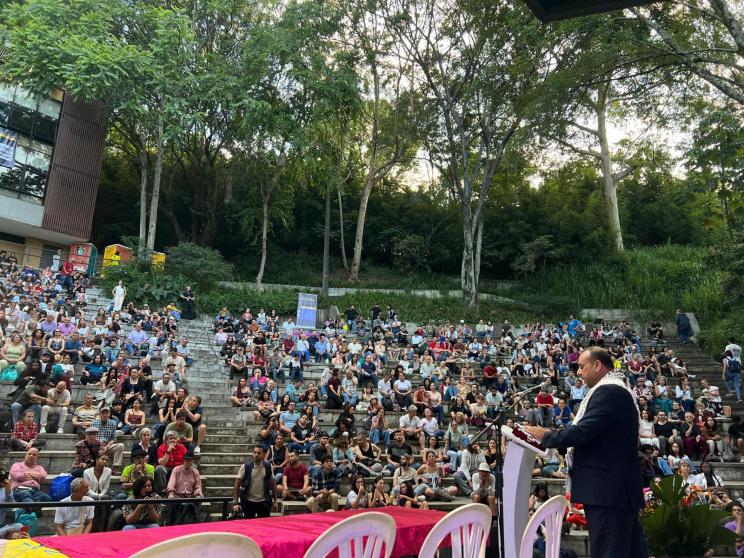 انطلاقاً من منصّة مهرجان مديين الشعري الدولي في نسخته ٣٥ ، وبحضور الشعراء المشاركين من دول العالم ، وفي مطلعهم رئيس المهرجان ورئيس حركة الشعر العالمي الشاعر الكبير فرناندو ريندون ، وتأسيساً على دعم شعراء العالم اللامحدود لفلسطين أرضاً وشعباً وحقاً ، سيما في ظل الإبادة الجماعية والثقافية في غزة ، فإننا ، باسم الاتحاد العام للكتاب والأدباء الفلسطينيين ، وبالتعاون مع مهرجان ميديين الدولي للشعر وبالشراكة مع حركة الشعر العالمية و التجمع الدولي لاتحادات الكتاب ، نعلن ، عن إطلاق جائزة فلسطين الدولية للشعر ، والتي ستمنح لكتاب شعري أو يندرج في إطار الفن الشعري جسد معاناة فلسطين وشعبها ، أو عبر عن رؤى مؤيدة لفلسطين وقضيتها العادلة ، أو شكّل صوتاً رافعاً للحلم في مواجهة الظلام وللحرية في مواجهة الاحتلال .