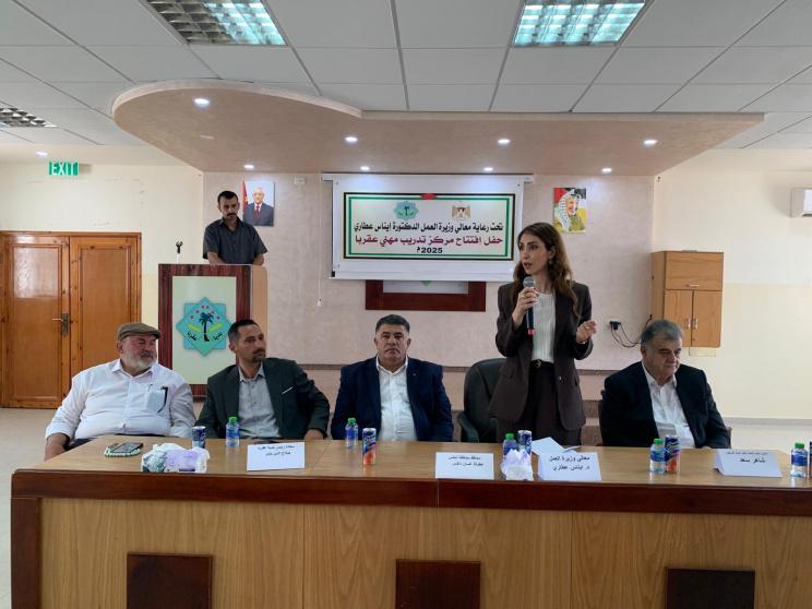كما وافتتحت وزيرة العمل الدكتورة إيناس العطاري مركز تدريب مهني عقربا، وذلك بحضور محافظ محافظة نابلس غسان دغلس ورئيس بلدية عقربا صلاح الدين جابر، ورئيس الاتحاد العام لنقابات عمال فلسطين، وممثلين عن القوى الوطنية والشعبية، والمؤسسات الرسمية والمجتمعية.