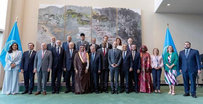 وترأس وفد دولة فلسطين رئيس الوزراء محمد مصطفى، وبمشاركة وزيرة الخارجية والمغتربين فارسين شاهين، ووزير التخطيط والتعاون الدولي اسطفان سلامة، ومندوب دولة فلسطين الدائم لدى الأمم المتحدة السفير رياض منصور.