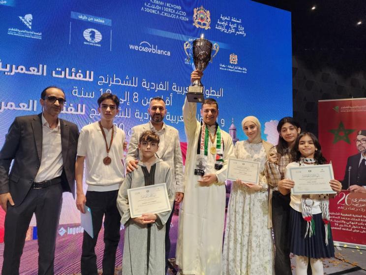 بإنجاز غير مسبوق، تألق أبطال فلسطين في بطولة الفئات العمرية العربية للشطرنج التي استضافتها العاصمة المغربية الرباط، حيث توّج البطل ماجد الطل بالميدالية الذهبية ولقب الأستاذ الدولي (IM)، بعد أداء استثنائي خطف الأنظار متفوقاً فيه على نخبة من أبرز اللاعبين العرب المصنفين.