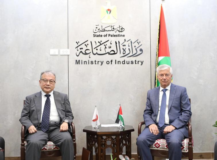 بحث وزير الصناعة، رئيس مجلس إدارة الهيئة العامة للمدن الصناعية والمناطق الصناعية الحرة أ. عرفات عصفور، مع سفير دولة اليابان لدى دولة فلسطين أرايكي كاتسوهيكو، والممثل العام للوكالة اليابانية للتعاون الدولي (جايكا) ميتسوتاكا هوشي، سبل تعزيز التعاون المشترك في مجال تطويرالمدن الصناعية.