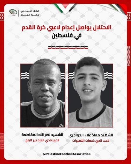 وقال اتحاد كرة القدم، إن المقاطعة يعد من اللاعبين البارزين في الملاعب الغزية، حيث لعب لجمعية الصلاح وعدد من الأندية الأخرى. فيما عُرف الحواجري بعطائه داخل صفوف خدمات النصيرات وحضوره المميز على المستطيل الأخضر. وبرحيلهما، تفقد الرياضة الفلسطينية اسمين لطالما شكّلا جزءاً من نسيجها الإنساني والرياضي.