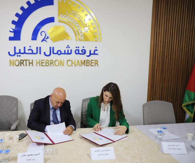 بدوره، أشار رئيس مجلس إدارة غرفة تجارة وصناعة وزراعة شمال الخليل محمود علان إلى أهمية التعاون مع وزارة العمل في دعم الرياديين وأصحاب المشاريع الصغيرة والتنسيق في تصميم البرامج التدريبية المهنية الملائمة لسوق العمل، وكذلك تعزيز التعاون من خلال مجالس التشغيل المحلية في محافظة الخليل، وتفعيل دور الغرفة كشريك رئيسي في هذه المجالس لضمان تمثيل القطاع الخاص في تحديد أولويات التشغيل وتخطيط البرامج.