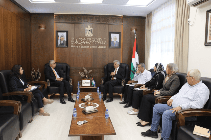التقى وزير التربية والتعليم العالي أ.د. أمجد برهم، في مكتبه اليوم، مدير عام جمعية البنوك في فلسطين د. بشار ياسين، بحضور ممثلي الجمعية والوزارة، وذلك لمناقشة فرص التعاون المشترك في إطار المسؤولية المجتمعية للبنوك ودورها في دعم قطاع التعليم الفلسطيني في ظل الظروف الراهنة.