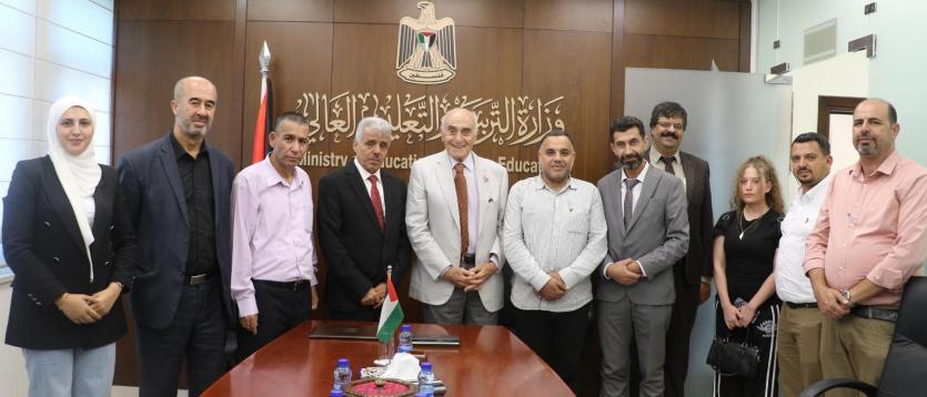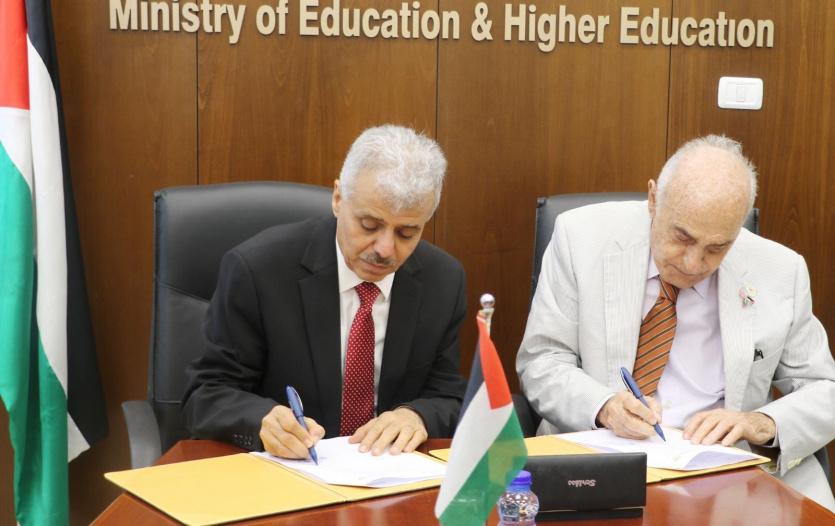 وقّع وزير التربية والتعليم العالي أ. د. أمجد برهم، ومؤسس مؤسسة منيب وأنجلا المصري د. منيب المصري، اتفاقية لتزويد مشغل التصميم الداخلي والديكور في مدرسة نابلس الثانوية الصناعية بأجهزة حاسوب حديثة، بما يعزز من بيئة التعليم المهني والتقني في المدرسة.