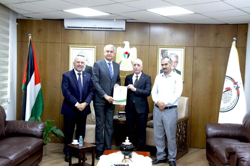 قام رئيس سلطة الأراضي المستشار علاء التميمي بتسليم تخصيصا لقطعة أرض لرئيس بلدية رام الله عيسى قسيس، اليوم الثلاثاء، في مكتبه بمدينة البيرة.