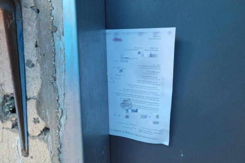 الاحتلال يخطر بوقف البناء في غرفتين زراعيتين وآبار للمياه في الخضر