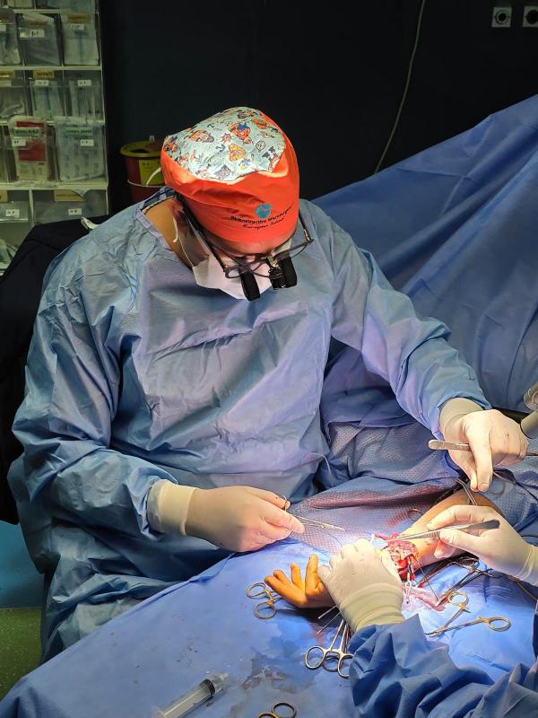 قاد الفريق الجراحي الدكتور عبد الرحمن مريدي، أخصائي جراحة اليد والجراحة المجهرية، بمشاركة زميله الدكتور يزن عمرو، أخصائي جراحة القدم والكاحل وترميم الأطراف السفلية. وبدأت العملية التي كانت بمثابة سباق مع الزمن لإنقاذ اليد وإعادة ترويتها الدموية في أسرع وقت ممكن لضمان عدم تلف الأنسجة.