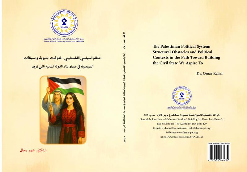 صدر عن مركز إعلام حقوق الإنسان والديمقراطية "شمس" كتاب جديد للدكتور عمر رحال أستاذ العلوم السياسية ، بعنوان، "النظام السياسي الفلسطيني: المعيقات البنيوية والسياقات السياسية في مسار بناء الدولة المدنية التي نريد". يتكون الكتاب من (160) صفحة من الحجم الكبير ويحمل الرقم المعياري الدولي رقم ISBN 978-9950-8602-0-9 .