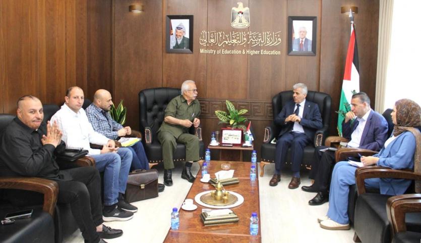 بحث وزير التربية والتعليم العالي أ. د. أمجد برهم، في مكتبه، اليوم، مع وفدٍ من الاتحاد العام لجرحى فلسطين "فجر" برئاسة الأمين العام جمال الشاتي، عدداً من الموضوعات الخاصة بخدمة الجرحى ضمن إطار القطاع التعليمي.