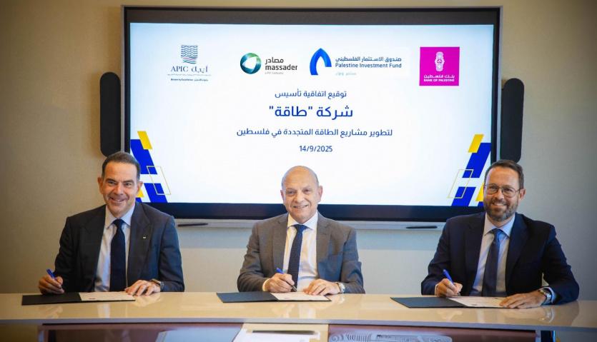 وقّعت كل من شركة مصادر، الذراع الاستثمارية لصندوق الاستثمار الفلسطيني في قطاع الطاقة، والشركة العربية الفلسطينية للاستثمار (أيبك)، ومجموعة بنك فلسطين، اتفاقية شراكة استراتيجية لتأسيس شركة "طاقة"، التي ستُشكّل كياناً اقتصادياً واستثمارياً وتطويرياً رائداً لتعزيز قطاع الطاقة المتجددة في فلسطين.