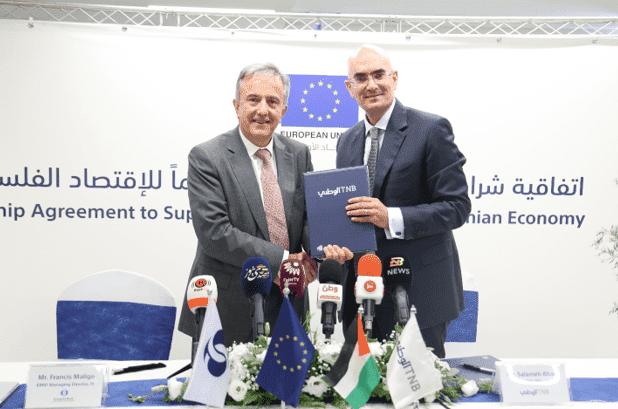 وقع البنك الوطني والبنك الأوروبي لإعادة الإعمار والتنمية اتفاقيتين بقيمة 7 مليون دولار أمريكي، تشمل حزمة تمويل أخضر بقيمة 5 مليون دولار أمريكي، تحت برنامج تمويل الاقتصاد الأخضر(GEFF)، إضافة إلى خط تمويل تجاري بقيمة 2 مليون دولار أمريكي لدعم الاستيراد والتصدير الفلسطيني.