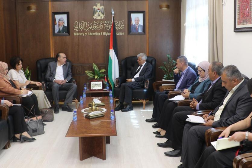 التقى وزير التربية والتعليم العالي أ.د. أمجد برهم، في مكتبه اليوم، أمين عام المجلس الأعلى للشباب والرياضة الوزير عصام القدومي، بحضور الوكيل رئيس الاتحاد الرياضي المدرسي د. نافع عساف حيث تم التباحث في سبل التعاون المشترك؛ خاصة في مجال تعشيب ساحات المدارس وتنظيم المخيمات الصيفية.