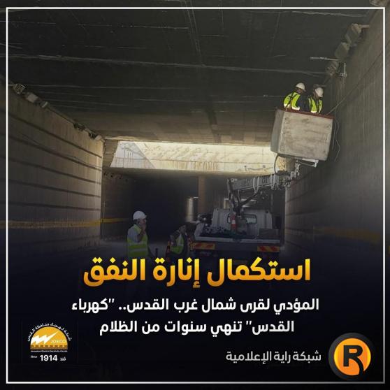 كهرباء القدس" تنهي سنوات من الظلام و تنير النفق المؤدي لقرى شمال غرب القدس