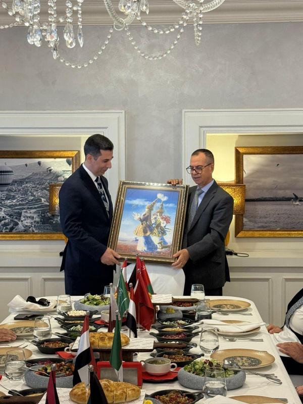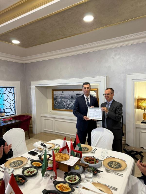وفي ختام الحفل، قدّم السفير منتصر أبو زيد باسم مجلس السفراء العرب لدى كازاخستان وباسم السلك الدبلوماسي العام، هديتين تذكاريتين وشهادتي تقدير للسفير اللبناني، تقديرًا لجهوده الدبلوماسية ومسيرته المتميزة في كازاخستان.