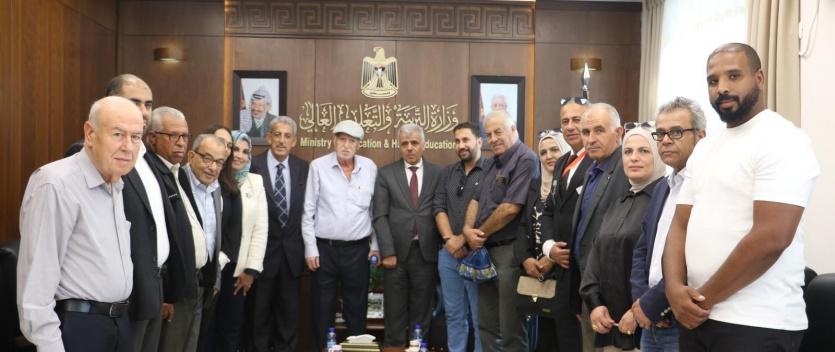 استقبل وزير التربية والتعليم العالي أ.د. أمجد برهم، في مكتبه، وفداً برئاسة د. غسان عبد الله يُمثل اللجنة الوطنية التحضيرية لمؤتمر "أي تربية وتعليم نريد للقدس، وفي القدس، وعن القدس"؛ الذي عقده، مؤخراً، مركز الدراسات والتطبيقات التربوية تحت رعاية السيد الرئيس محمود عباس؛بمشاركة واسعة من أكاديميين وباحثين وخبراء تربويين وفنانين ومؤسسات مجتمع مدني.