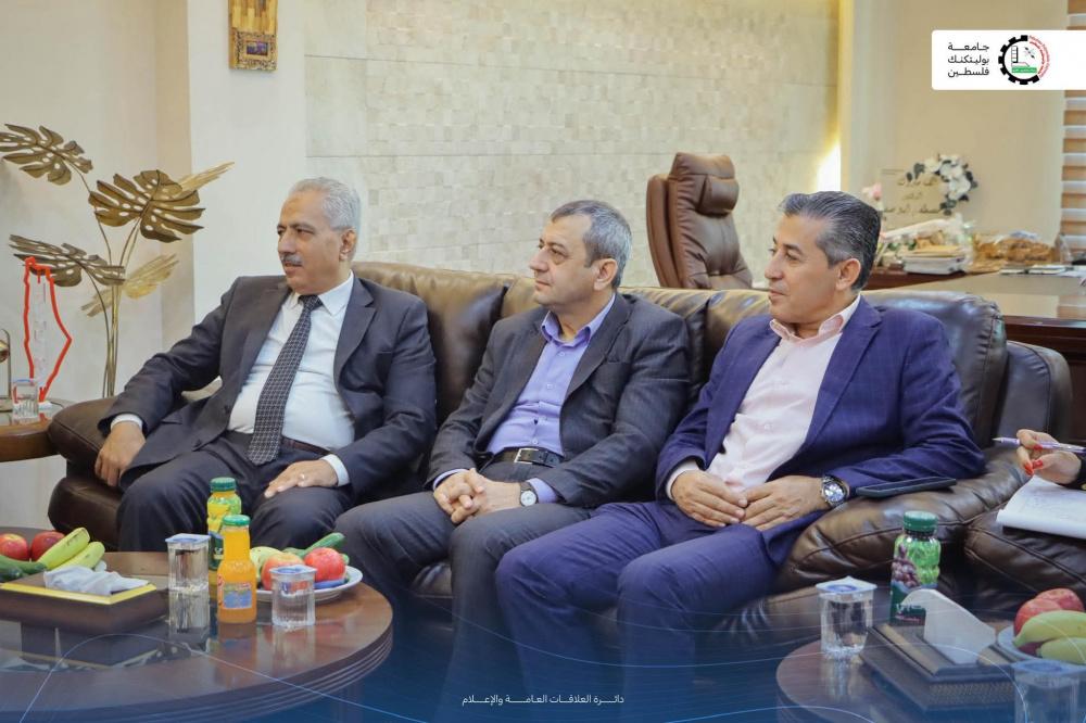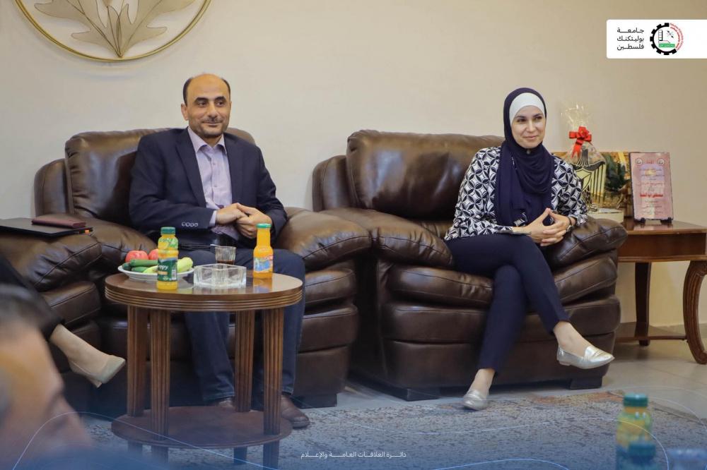 وتأتي هذه الزيارة امتدادًا لأنشطة وزارة الصناعة الهادفة إلى تأسيس القرية الحرفية المستدامة للاحذية والجلود، والتي شاركت فيها جامعة بوليتكنك فلسطين ممثلةً بمساعد رئيس الجامعة لشؤون خدمة المجتمع د. محمد أبو طه، تعزيزًا لدور الجامعة في دعم المشاريع الوطنية التي تسعى إلى إحياء التراث الصناعي والحرفي الفلسطيني وربط التعليم الأكاديمي بالاحتياجات الفعلية للمجتمع والقطاع الإنتاجي. كما تم خلال اللقاء بحث سبل التعاون المشترك بين الوزارة والجامعة في مجالات التدريب المهني، وتطوير الصناعات الصغيرة والمتوسطة، وتمكين رواد الأعمال الشباب، بما يسهم في تعزيز الاقتصاد الوطني وبناء قاعدة إنتاجية مستدامة.