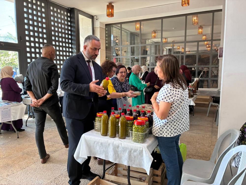 وحضر يوم التسوق 21 جمعية نسوية وخيرية وتعاونيات عرضت منتجاتها من الزيت والزيتون وأطباق تراثية وأعشاب طبية وسلعًا تقليدية.