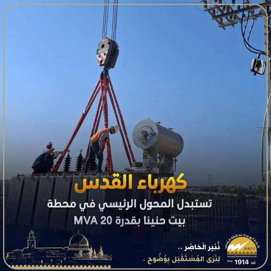 كهرباء القدس تستبدل المحول الرئيسي في محطة بيت حنينا بقدرة 20 MVA