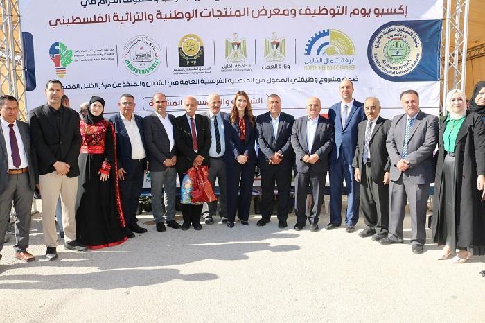 جاء ذلك خلال رعايتها ومحافظ الخليل خالد دودين، فعاليات يوم التوظيف "إكسبو"، ومعرض المنتجات الوطنية والتراثية الفلسطيني، في جامعة فلسطين التقنية "خضوري"/ فرع العروب، ضمن مشروع "وظيفتي" الممول من القنصلية الفرنسية العامة في القدس والمنفذ من قبل مركز الخليل المجتمعي لتعليم الشباب والكبار.