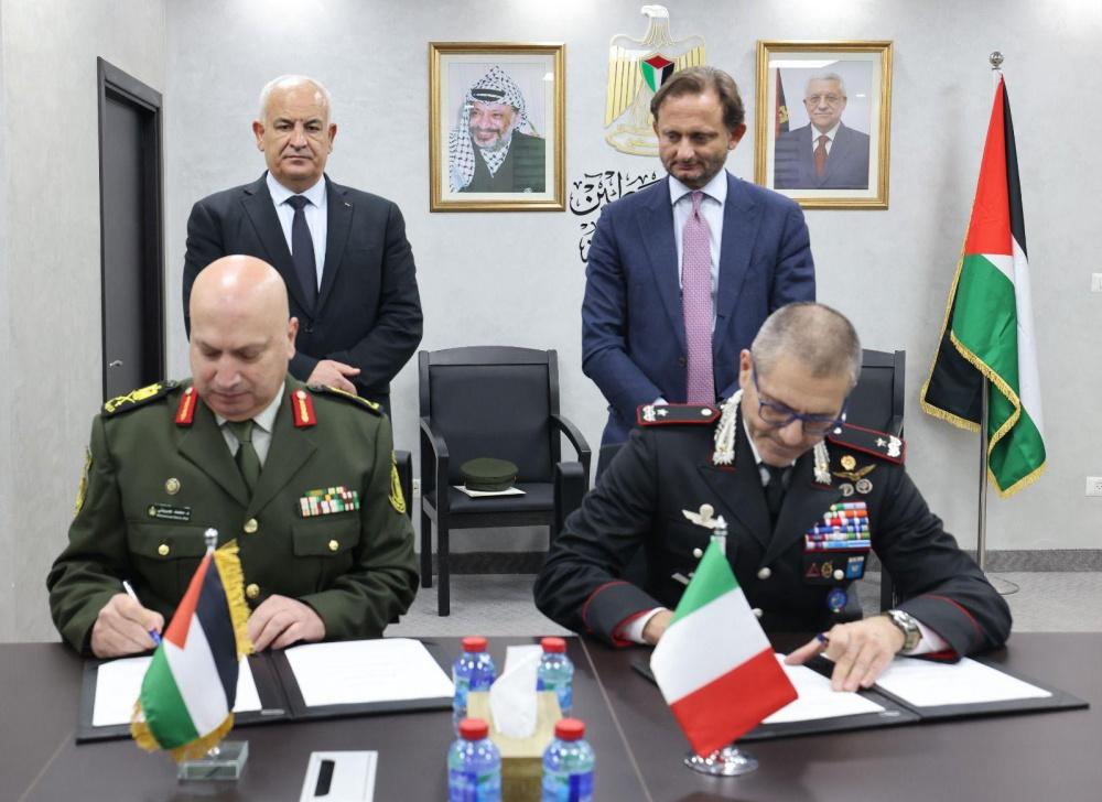 وقد وقع الاتفاقية عن الجانب الفلسطيني المساعد الأمني لوزير الداخلية اللواء محمد جبريني، فيما وقعها عن فريق الكارابنييري الجنرال أندريا تورزاني.