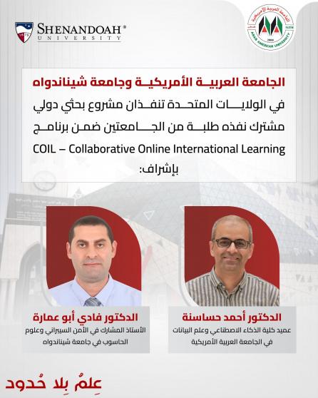 اختتمت الجامعة العربية الأمريكية وجامعة شيناندواه في الولايات المتحدة تنفيذ مشروع بحثي دولي مشترك ضمن برنامج COIL – Collaborative Online International Learning، حمل عنوان: