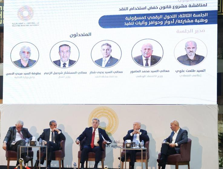وفي الجلسة الثالثة، التي أدارها الإعلامي الاقتصادي طلعت علوي، تم تسليط الضوء على التحول الرقمي باعتباره مسؤولية وطنية مشتركة، وعلى دور القطاعات الرسمية والمالية في تطوير بنية رقمية متقدمة. وشارك في هذه الجلسة وزير الاقتصاد الوطني محمد العامور، ووزير العدل المستشار شرحبيل الزعيم، ومحافظ سلطة النقد يحيى شنار، ووكيل وزارة المالية مجدي الحسن، حيث استعرضوا جهود سلطة النقد وخططها الهادفة لتعزيز خدمات الدفع الإلكتروني والجاهزية الرقمية في فلسطين.