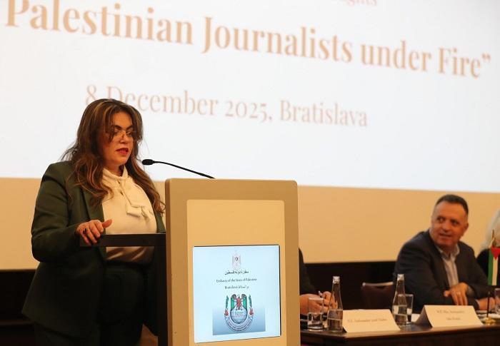 وفي كلمتها الافتتاحية، أكدت سفيرة دولة فلسطين لدى سلوفاكيا صفاء الخالدي، أن الصحفيين الفلسطينيين يجسّدون شجاعة استثنائية في الدفاع عن الحقيقة، رغم الاستهداف المتواصل الذي أدى إلى استشهاد 256 صحفيًا منذ بدء العدوان الإسرائيلي قبل أكثر من عامين.