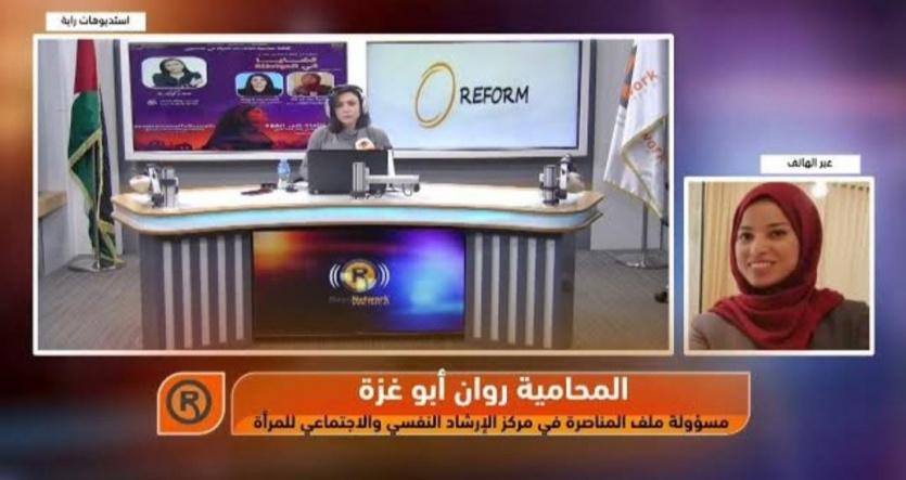 واستضاف البرنامج، الذي تنتجه مؤسسة "REFORM"، شخصيتين بارزتين في المجال الحقوقي والاجتماعي: المحامية روان أبو غزة، مسؤولة ملف المناصرة في مركز الإرشاد النفسي والاجتماعي للمرأة، والمستشارة ريما شبيطة، المتخصصة في قضايا النوع الاجتماعي والسياسات العامة.