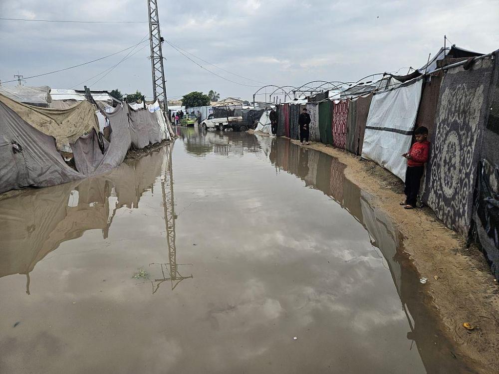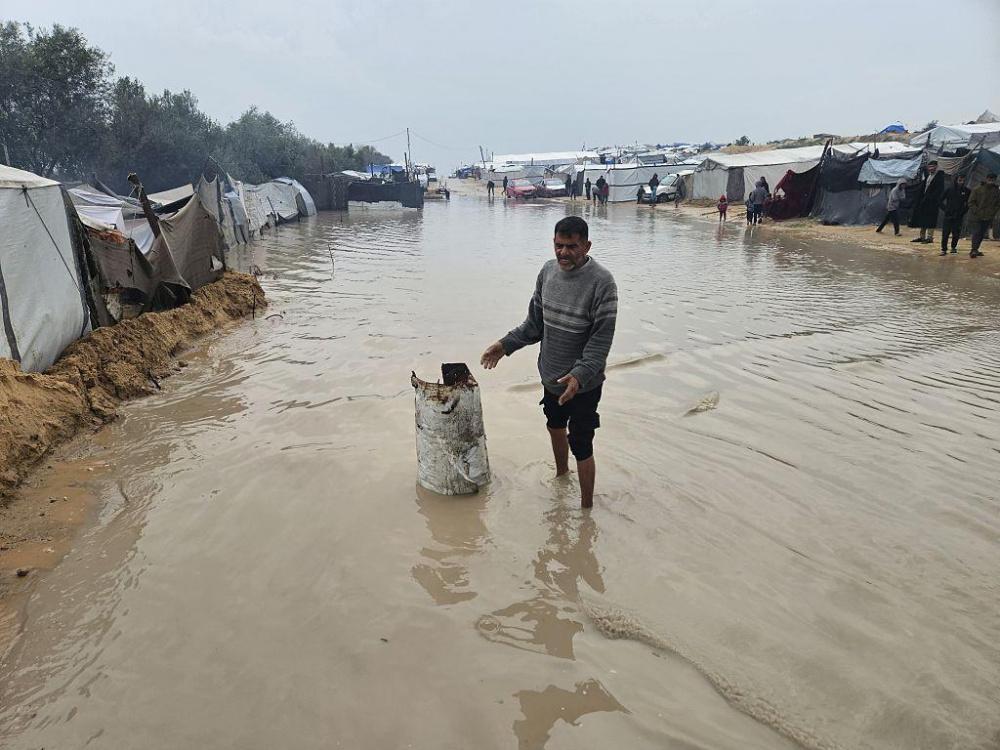 واجتاحت المياه مناطق واسعة من مخيمات النزوح، ما تسبب بانهيار عدد من الخيام وتلف مواد الإيواء الأساسية، في وقت يعيش فيه نحو 250 ألف أسرة داخل خيام مهترئة معرّضة للسيول والبرد القارس؛ وفق الدفاع المدني بغزة.