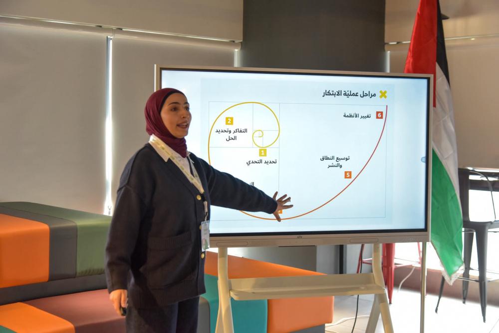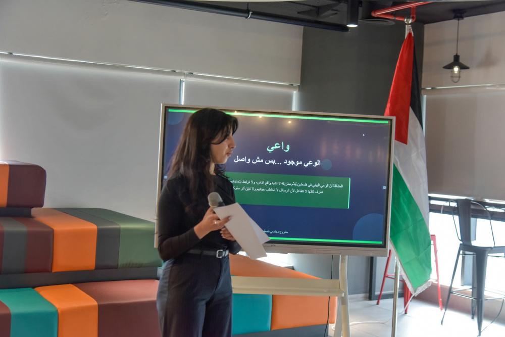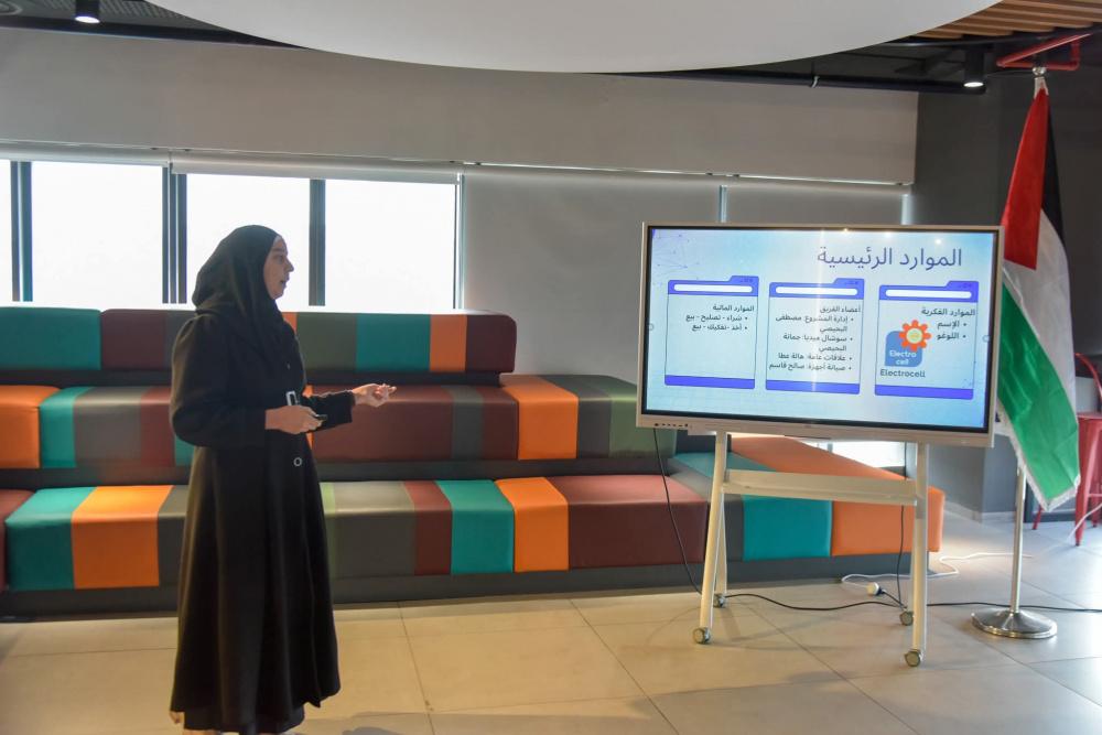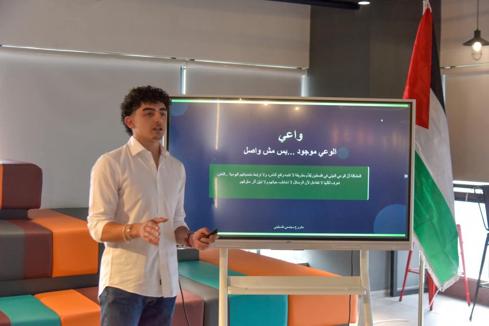 وخلال اليوم الختامي، قدمت لمى عمرو من مؤسسة بيلد باليستاين عرضًا تناول منهجية العمل مع الرياديين، موضحة مراحل تطوير الأفكار وآليات الإرشاد والتوجيه التي رافقت المشاركين منذ اليوم الأول، مما أتاح لهم تطوير مشاريع قابلة للتطبيق وذات أثر ملموس على البيئة المحلية.