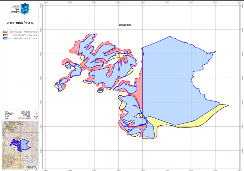 وتبيّن الوثائق الرسمية التي نُشرت عن جيش الاحتلال بتاريخ 18/12/2025 بوضوح قيام الاحتلال بـإضافة نحو 472 دونما إلى نطاق سيطرة المستعمرة، مقابل استبعاد 351.08 دونما، والإبقاء على ما مجموعه 2908 دونما دون تغيير على الإعلان الأول الذي صدر بتاريخ الأول من تشرين أول/ أكتوبر 1982 والذي بموجبه أعلنت مئات الدونمات كأراضي دولة من أراضي بلدات أبو ديس والسواحرة جنوب القدس.