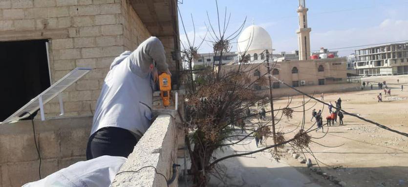 برعاية الرئيس: "شؤون اللاجئين بالمنظمة" تنجز مشروع إنارة تجمع الحسينية بريف دمشق في سوريا بالطاقة الشمسية
