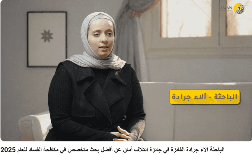 الباحثة آلاء جرادة عن أفضل بحث متخصص في مكافحة الفساد عن فئة البكالوريوس