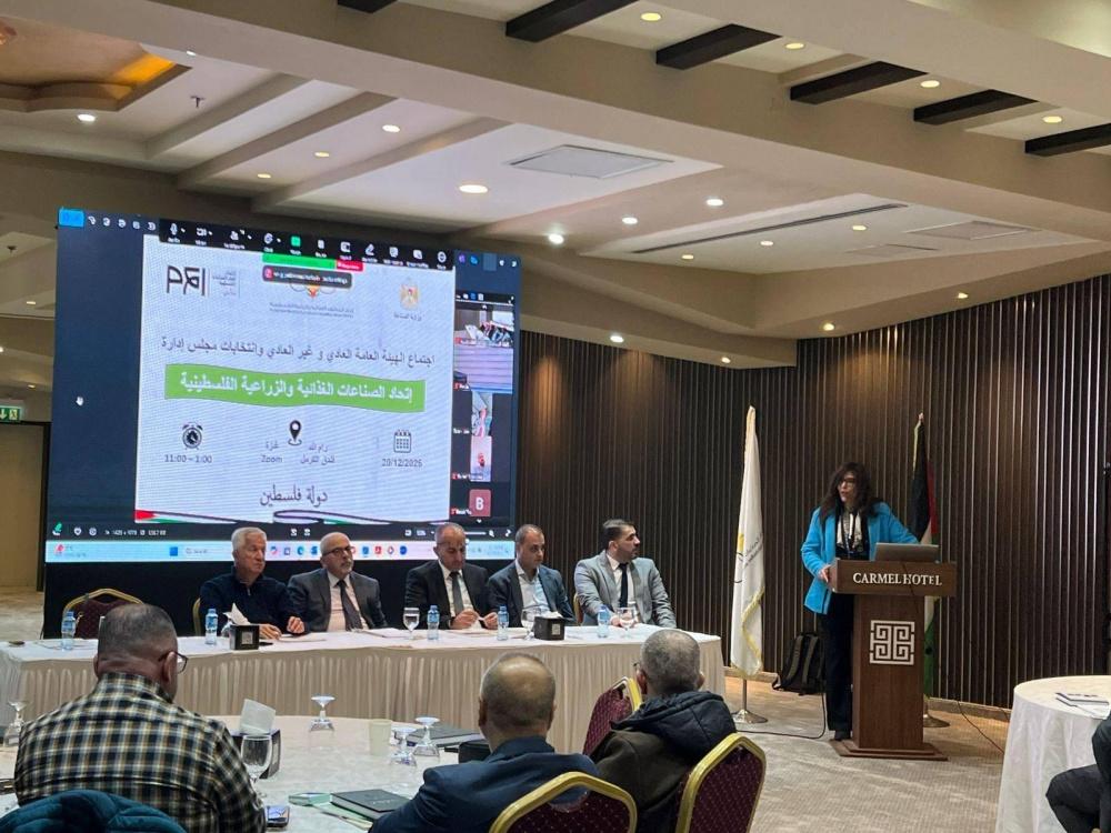 طبقا لاحكام النظام الداخلي لإتحاد الصناعات الغذائية والزراعية الفلسطينية، عقد الاتحاد يوم السبت الموافق 20/12/2025، اجتماعي الهيئة العامة العادي وغير العادي، إلى جانب انتخاب مجلس ادارة جديد للدورة العاشرة في كل من الضفة الغربية وقطاع غزة وفقا لجدول الاعمال المقرر، بحضور ممثلي وزارة الصناعة، والاتحاد العام للصناعات الفلسطينية، وشركات الصناعات الغذائية الفلسطينية الأعضاء في الهيئة العامة.